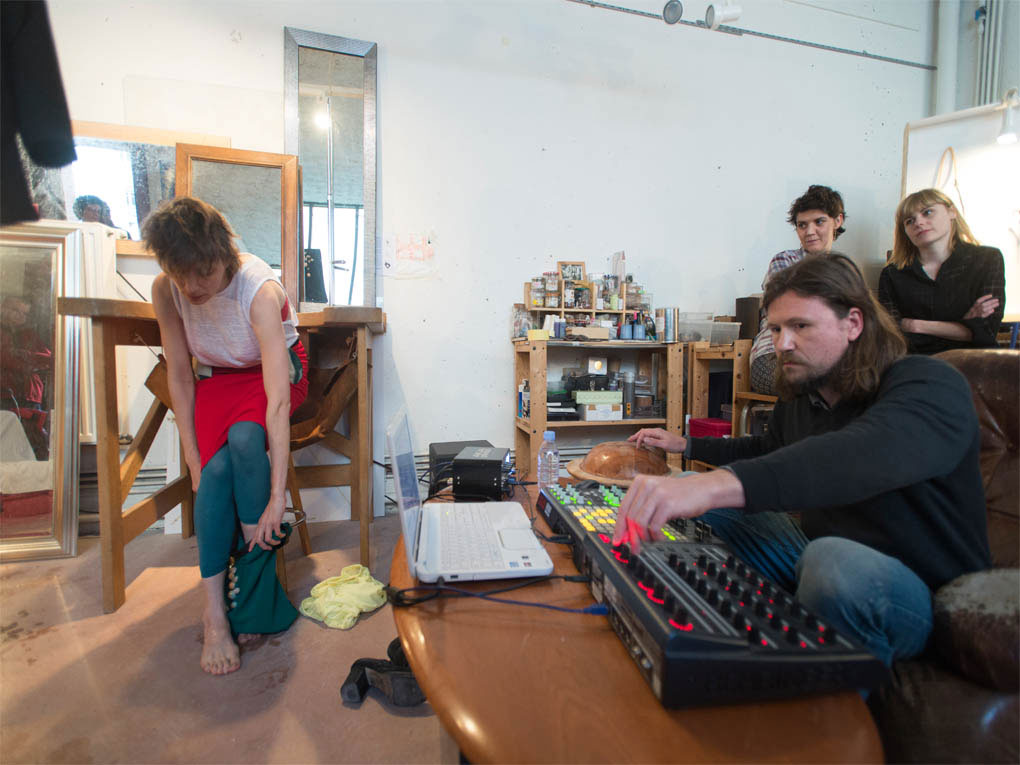 performance réalisée lors de la présentation de la collection hiver 2014/2015 signée Jordane Somville